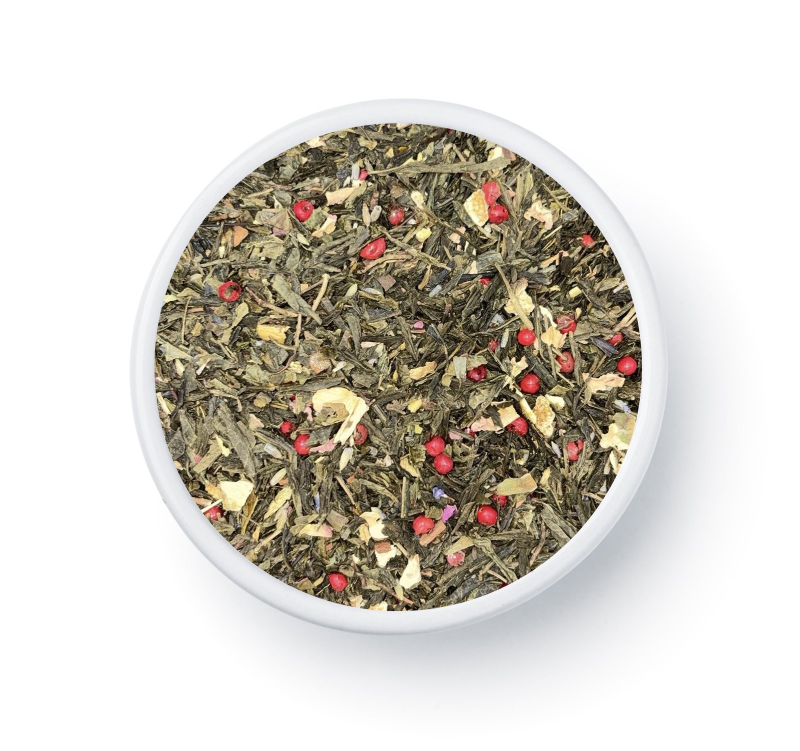 Composition : Thé vert de Chine Sencha, menthe, racine de réglisse, bâtons de cannelle, écorces d’orange, poivre rose, pétales de roses, lavande, jasmin, arôme naturel d’Orange.